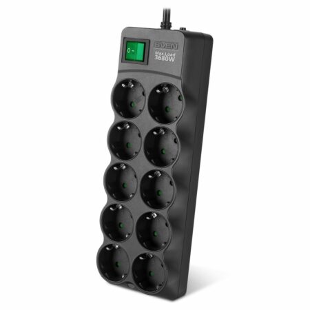 Сетевой фильтр Sven SF-10E-16, 10 розеток, 3м, Black