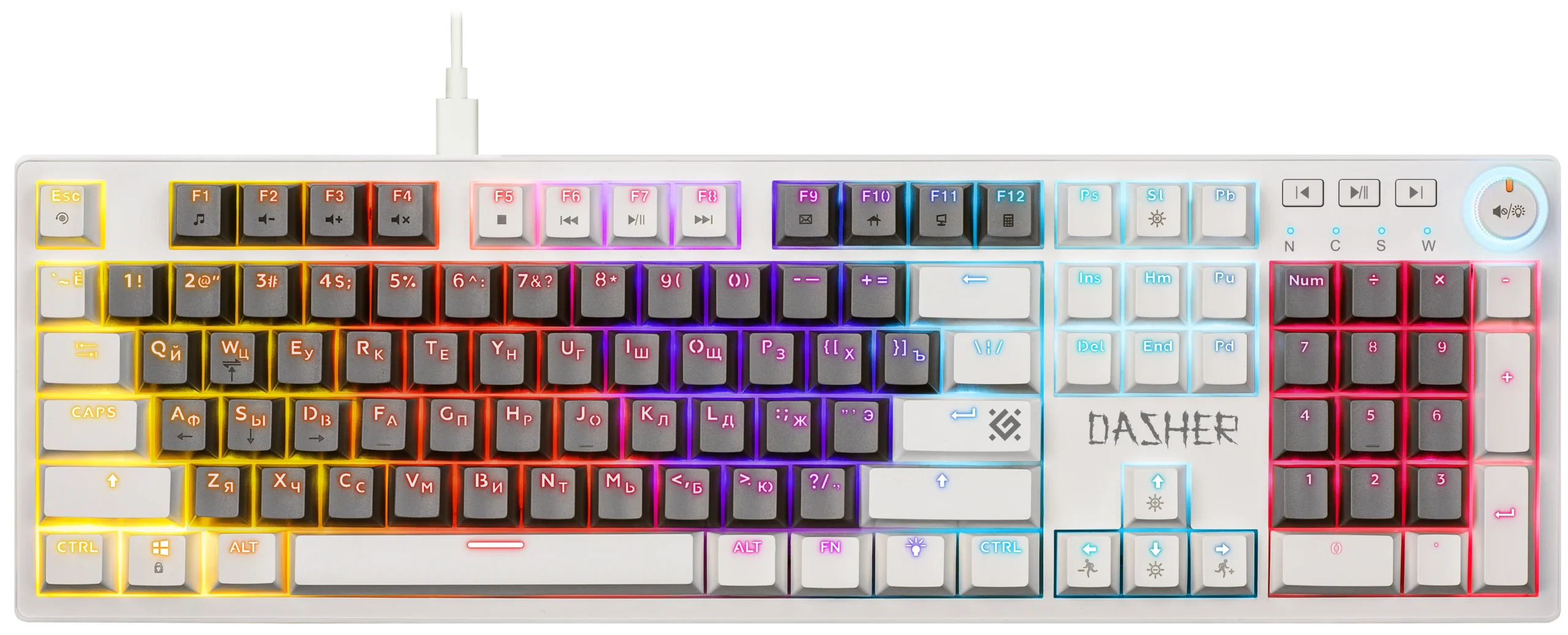 Клавиатура Defender Dasher GK-472, YH red, Gaming, RGB, White-Grey, USB