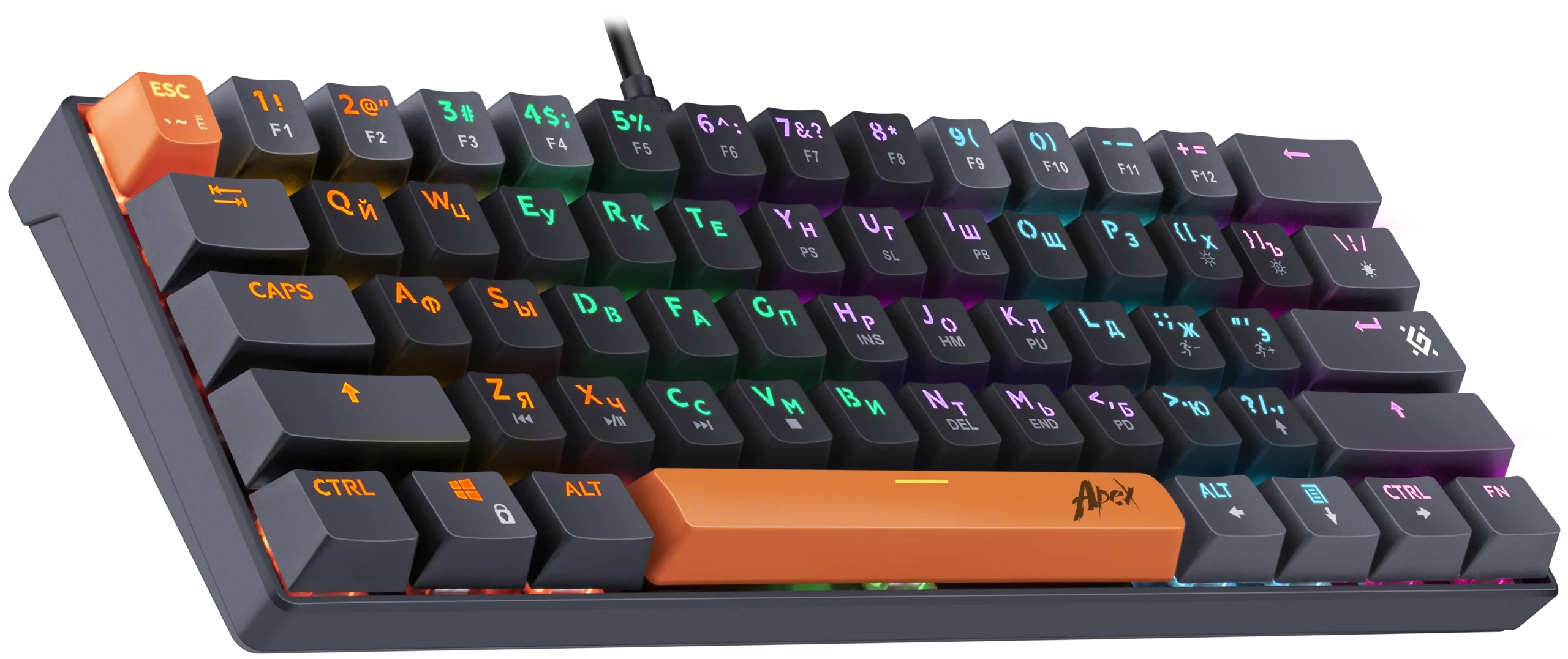 Клавиатура Defender Apex GK-002, Gaming, Multimedia, Wired, OUTEMU Red, RGB, Black, USB