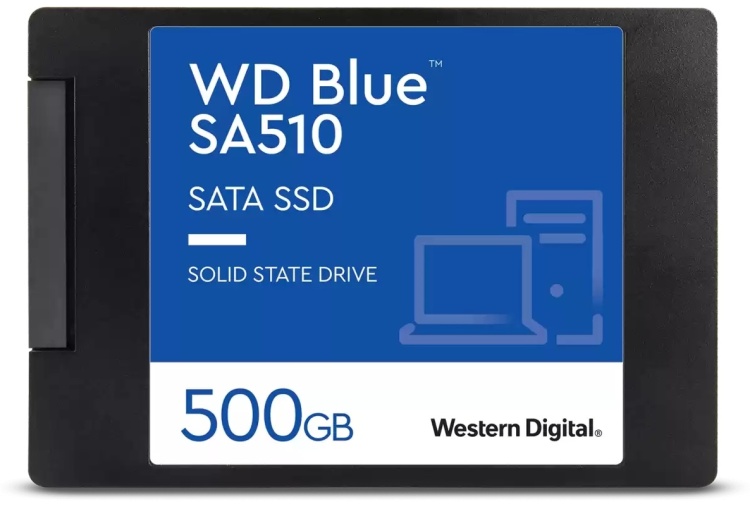 500GB SSD WD BLUE SA510 2.5” 7мм SATA 6Gb/s Чтение 555Мб/с Запись 440Мб/с, WDS500G3B0A.