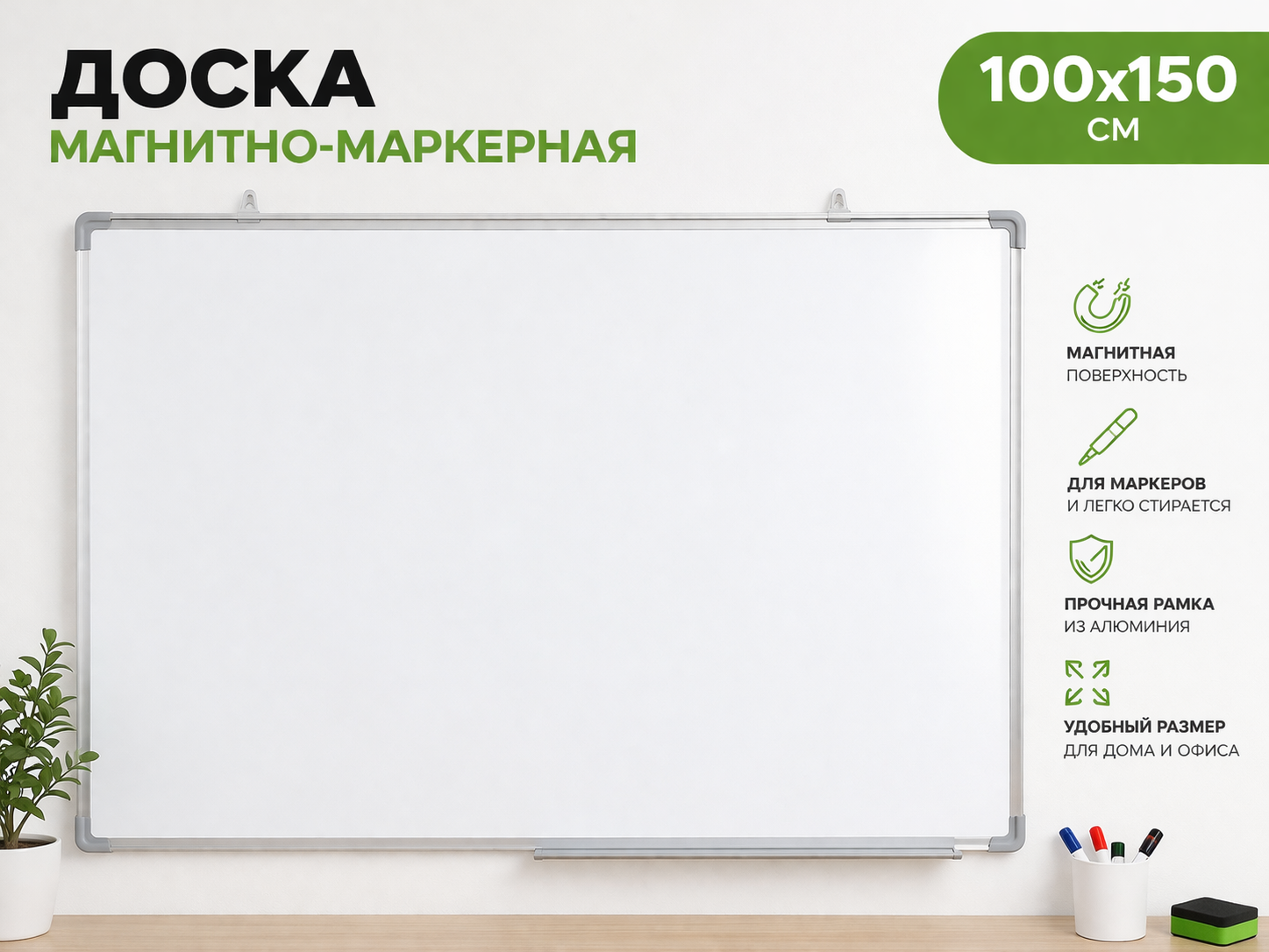 Доска магнитно-маркерная-100×150 — это современный и функциональный инструмент для обучения, презентаций и совместной работы. Она идеально подходит для школ, учебных центров, офисов и конференц-залов. Такая доска помогает наглядно объяснять материал, быстро фиксировать идеи и поддерживать порядок в учебном процессе.