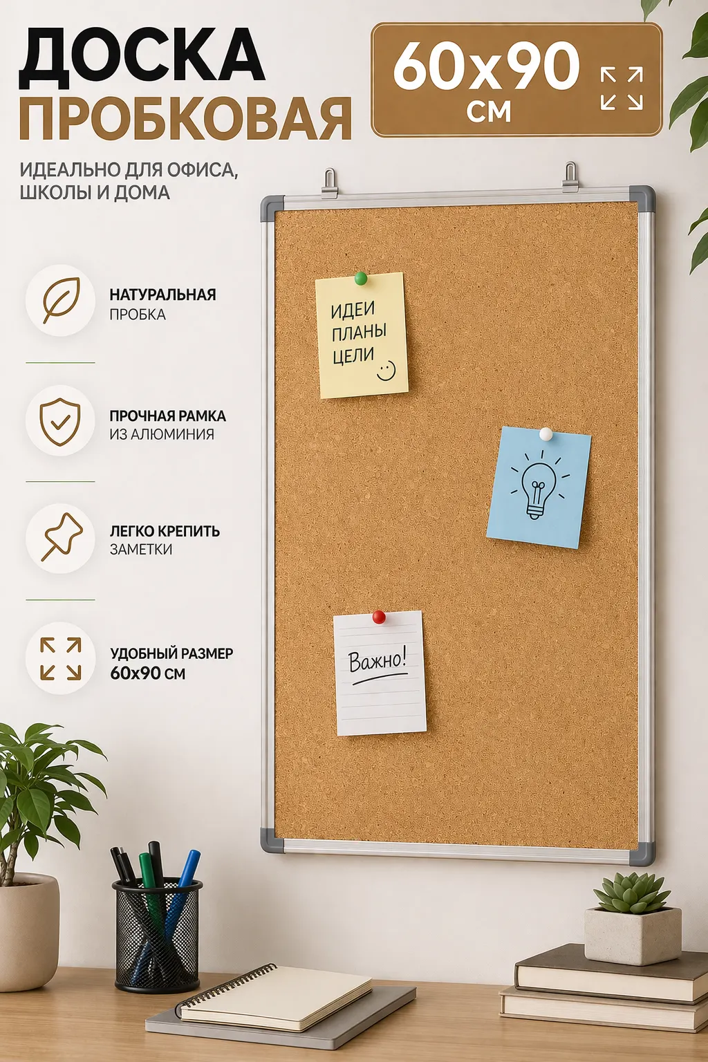 Доска пробковая 60×90 — практичное решение для школы и офиса