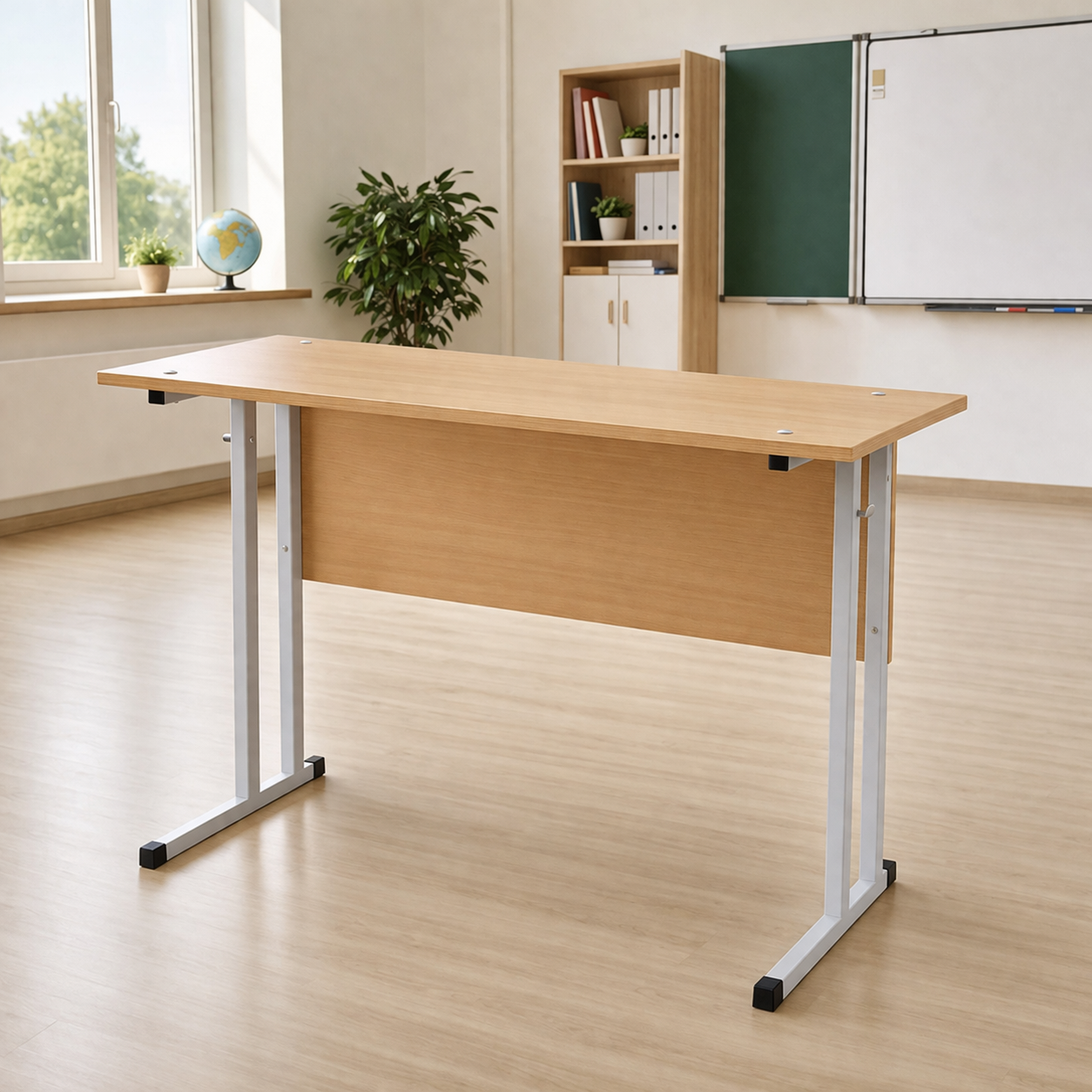 В комплект входят удобные стулья, выполненные из прочных материалов. Парта поставляется со стульями, что делает ее готовым решением для оснащения кабинетов и учебных классов. Такой комплект значительно упрощает процесс закупки и организации учебного пространства.