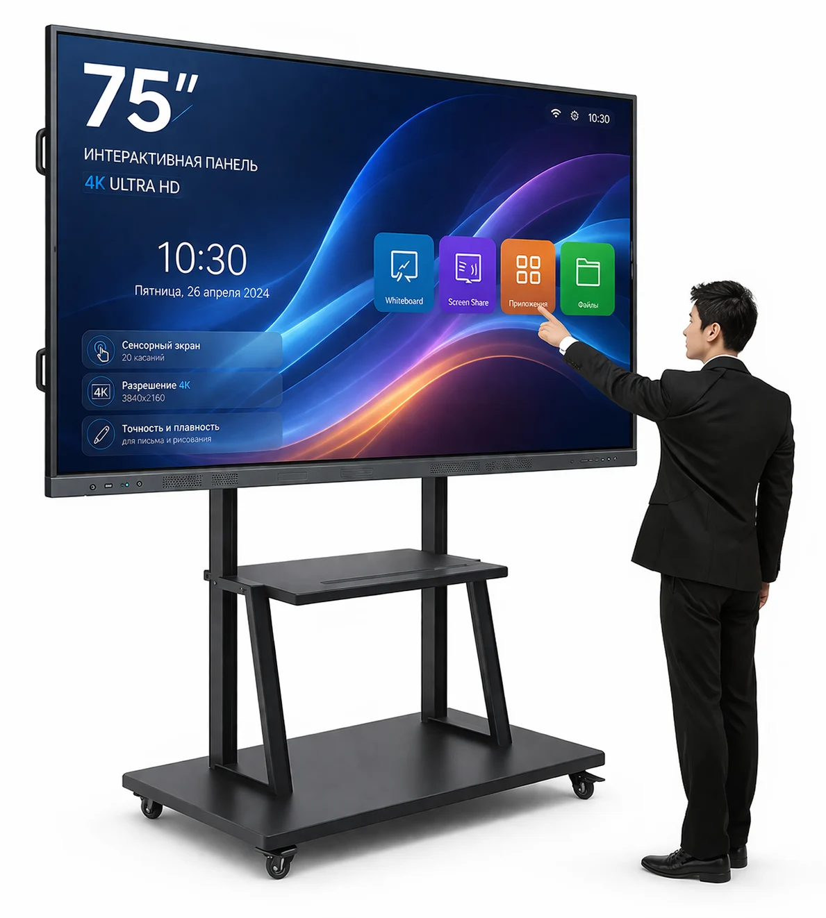 Сенсорная интерактивная панель 75 представляет собой многофункциональное устройство, предназначенное для образовательных учреждений, офисов и конференц-залов. Большой экран 75 дюймов обеспечивает удобный просмотр презентаций, видео и учебных материалов. Благодаря сенсорному дисплею управление становится простым и интуитивно понятным. Таким образом, пользователи могут быстро взаимодействовать с контентом без дополнительных устройств.
