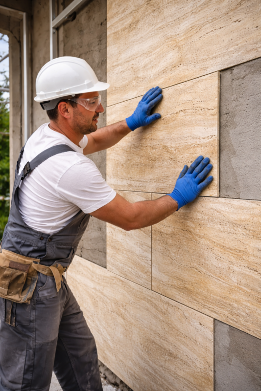 Облицовка фасадов травертином — Dolana.kz – интернет-магазин канцелярских, строительных и электронных товаров.