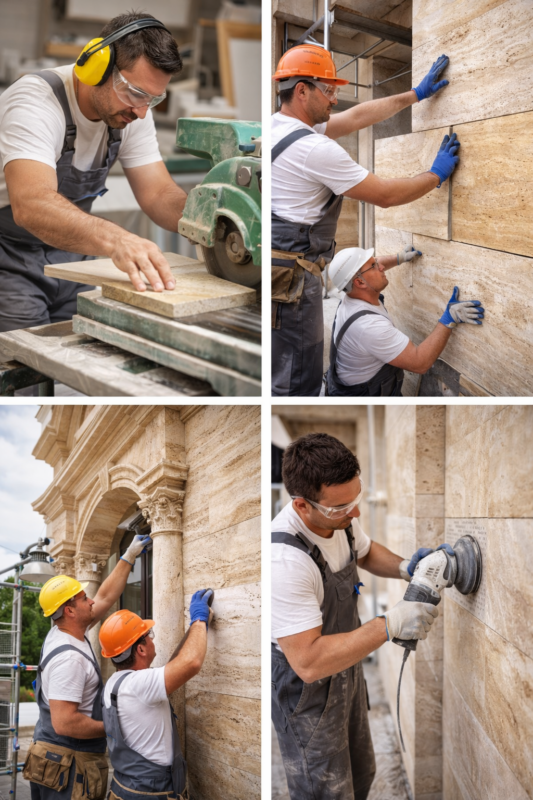 Работа с травертином и гранитом это профессиональная облицовка стен, полов и фасадов натуральным камнем и подходят для внутренней и наружной отделки.